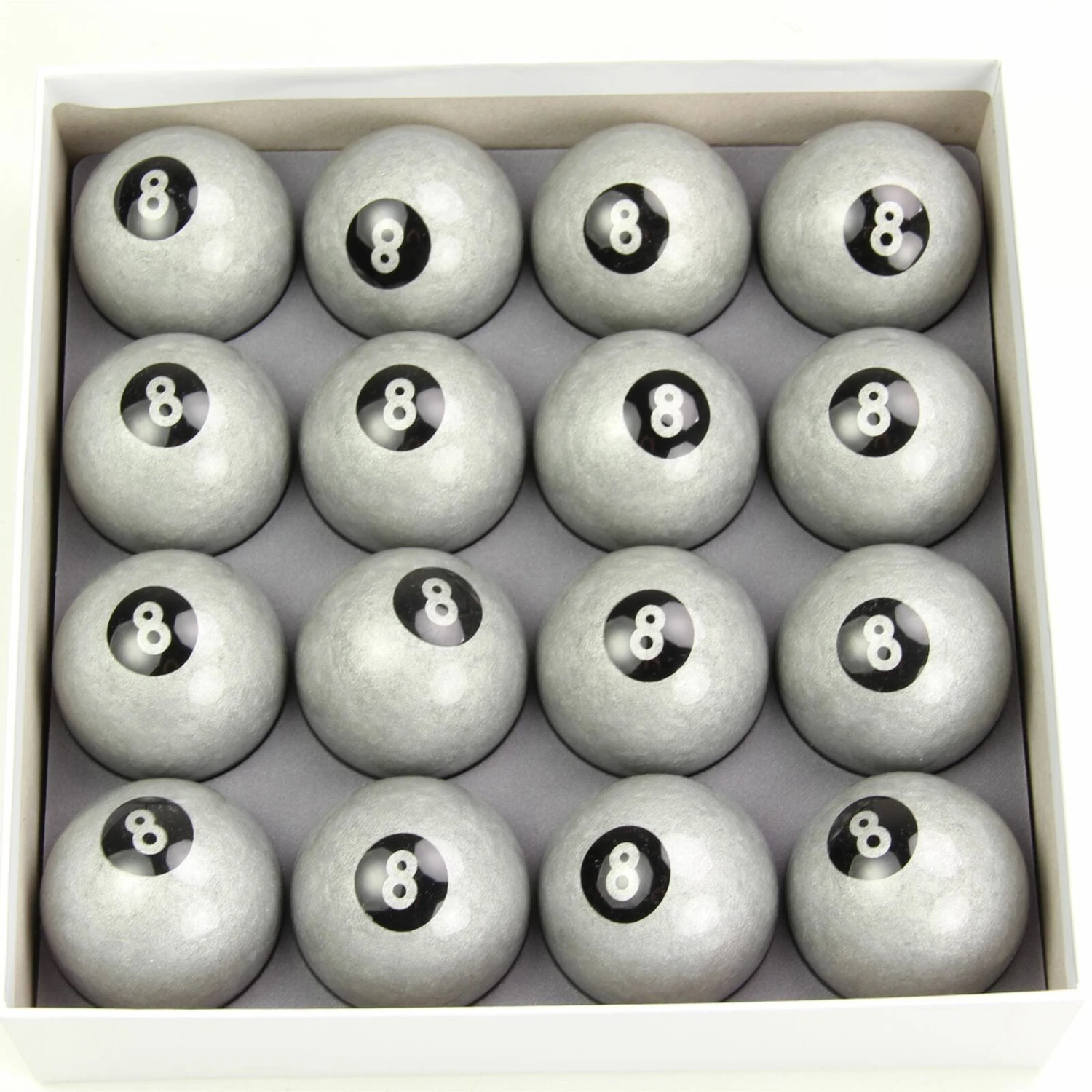 - 16 x 2″ Aramith Silver 8 Ball cue ball – weighs and performs the same as a standard black 8 ball