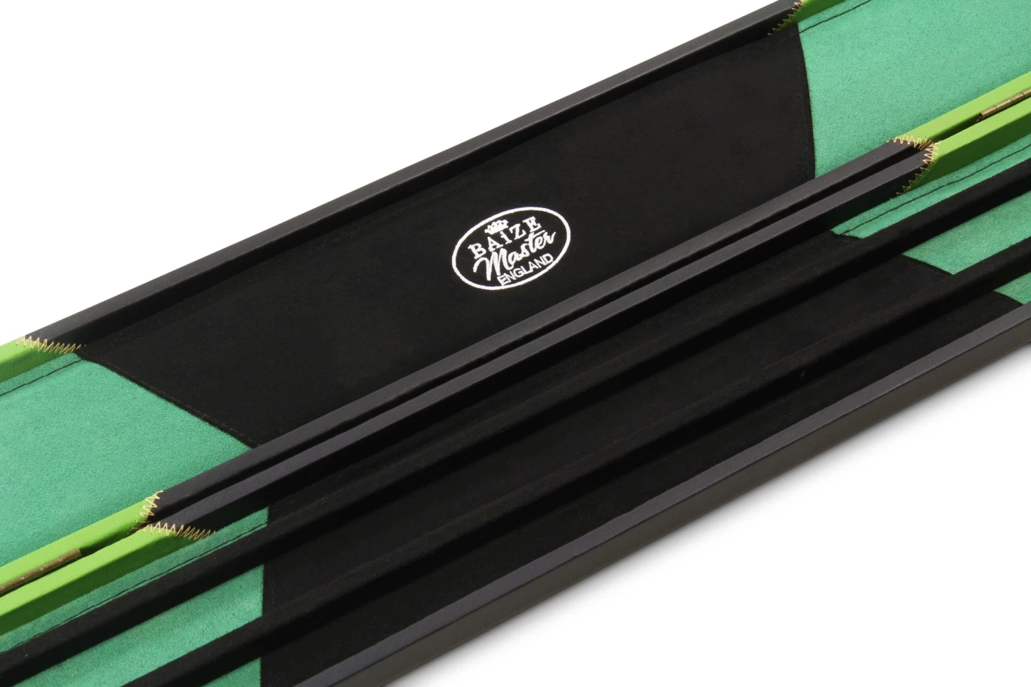 Our deluxe Baize Master one-piece cue cases feature chunky plastic ends for improved protection mixed with a distinctive arrow patch design for an overall, highly desirable cue case. These cases have an internal chalk compartment and matching suede style padded interiors which will hold up to 3 of your cues tightly in place. Finished with a quality exterior Baize Master metal badge and internal Baize Master embroidered logo.
