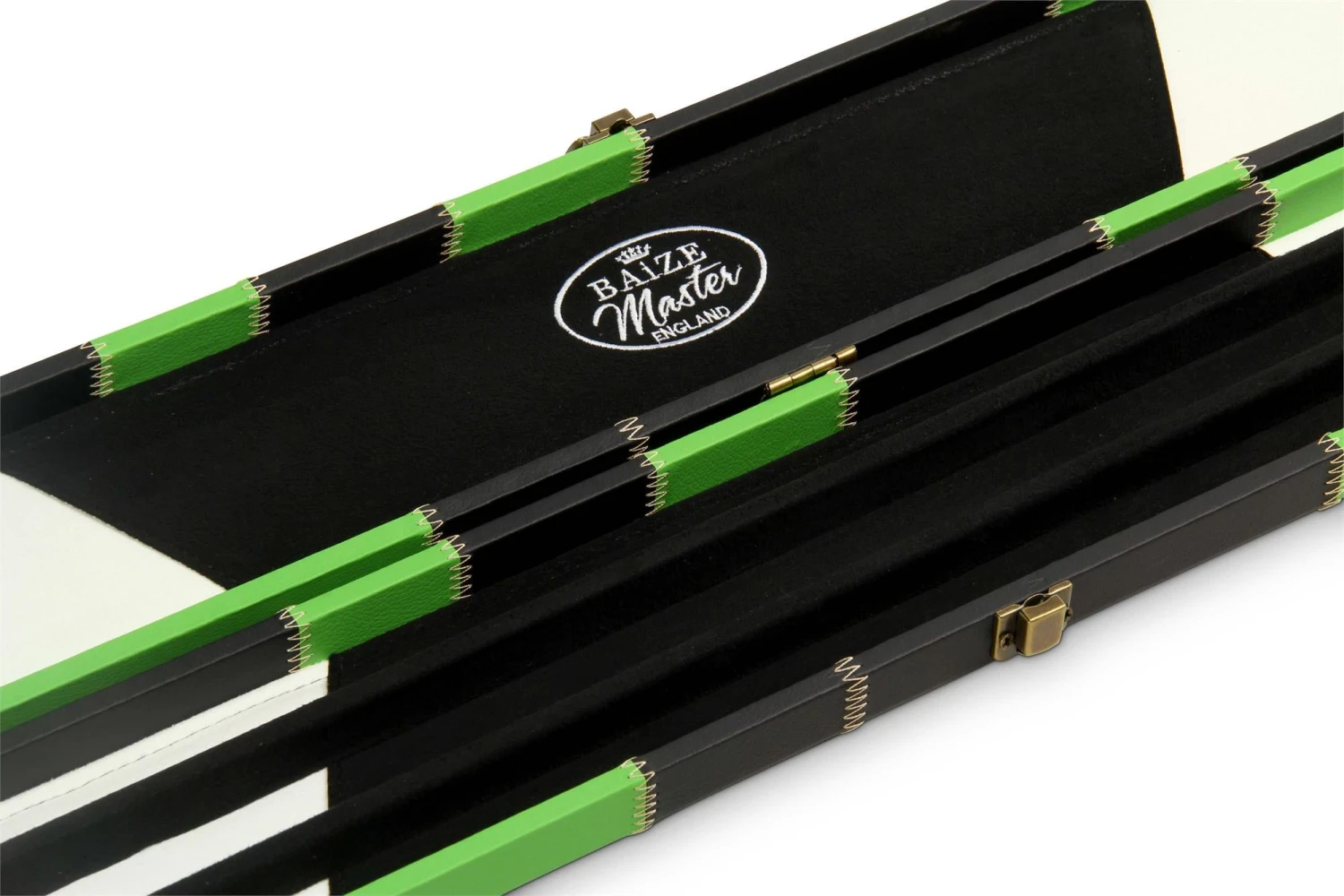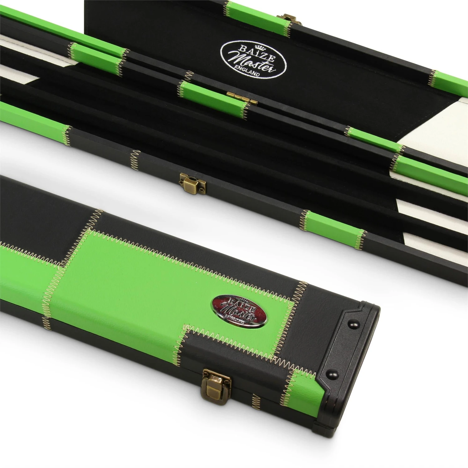 Our deluxe Baize Master one-piece cue cases feature chunky plastic ends for improved protection mixed with an eye-catching patch design for an overall, highly desirable cue case. This case will hold 3 x 1pc cues and features a convenient internal chalk compartment. The suede style padded interior holds the cue tightly in place whilst providing a stylish look and feel for a perfect blend of form and function.