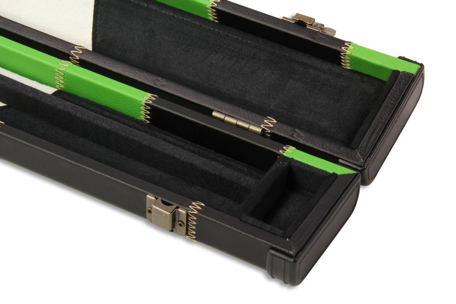 Our deluxe Baize Master 3/4 cue cases feature chunky plastic ends for improved protection mixed with an eye-catching patch design for an overall, highly desirable cue case. Combined with an internal chalk compartment and suede style padded interior, it will hold the cue tightly in place – this case offers the perfect blend of stylish looks and practical function. Finished with a quality exterior Baize Master metal badge and internal Baize Master embroidered logo.