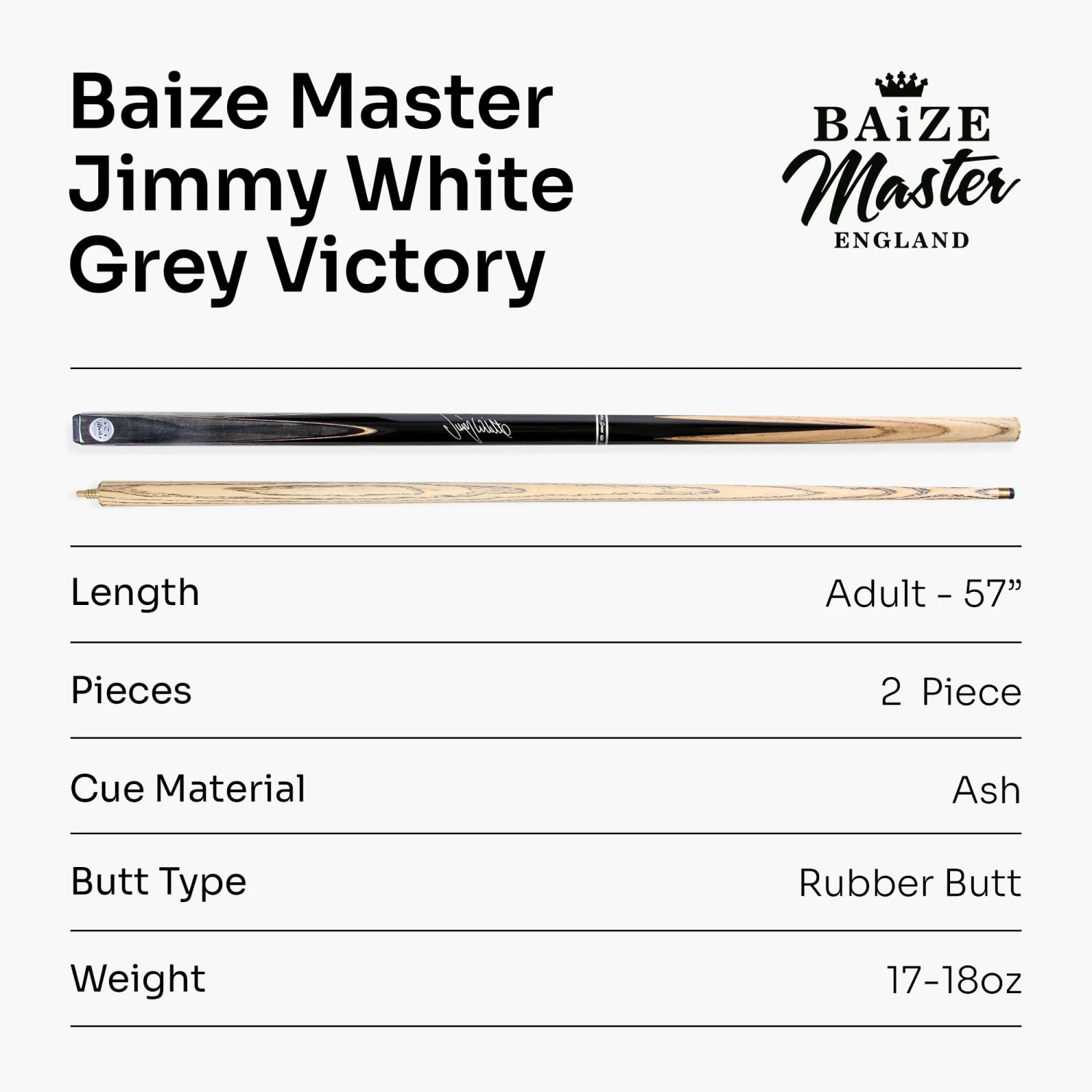 Limited edition Jimmy White endorsed cue! We teamed up with Jimmy White to launch a limited-edition range of Baize Master cues with his signature printed on the butt. Jimmy is the rock and roll of the snooker world, a true legend in his own right and a household name. These cues are very unique, and we have limited stocks available. The 9.5mm tip size means it can be used for both snooker and pool. It has a matching ash grain shaft a leather pro-tip. They make a great gift for a budding snooker or pool player.