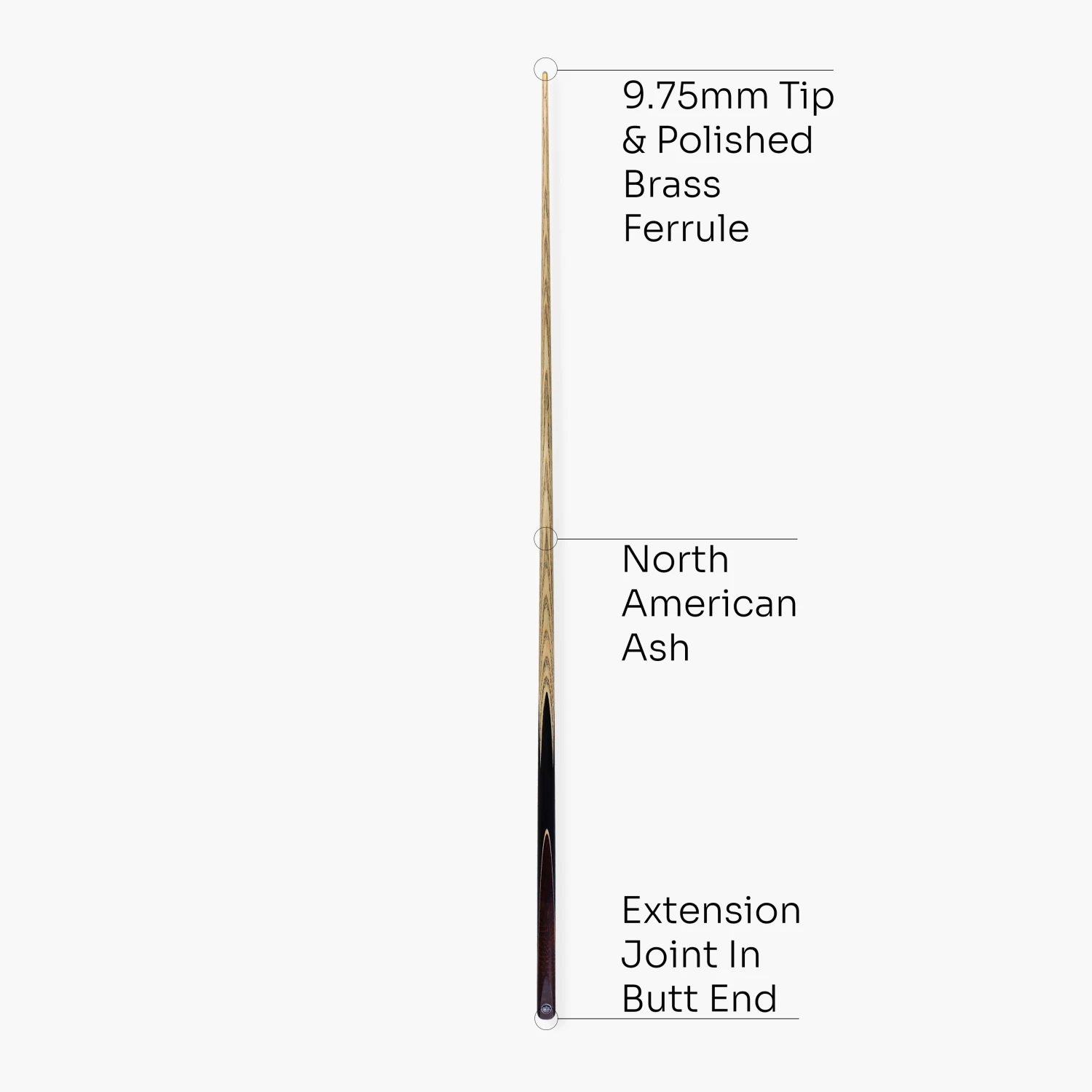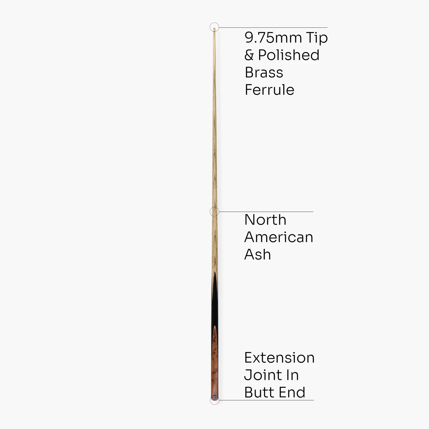 - Brass extension joint in butt end – takes Baize Master screw in extensions (sold separately)