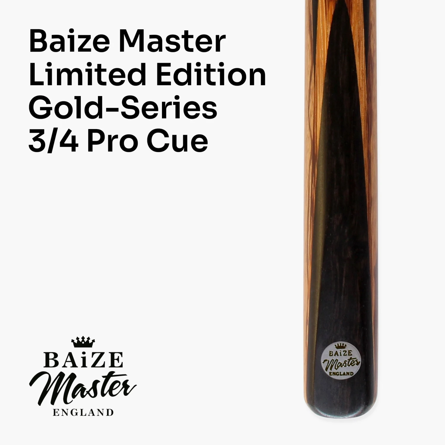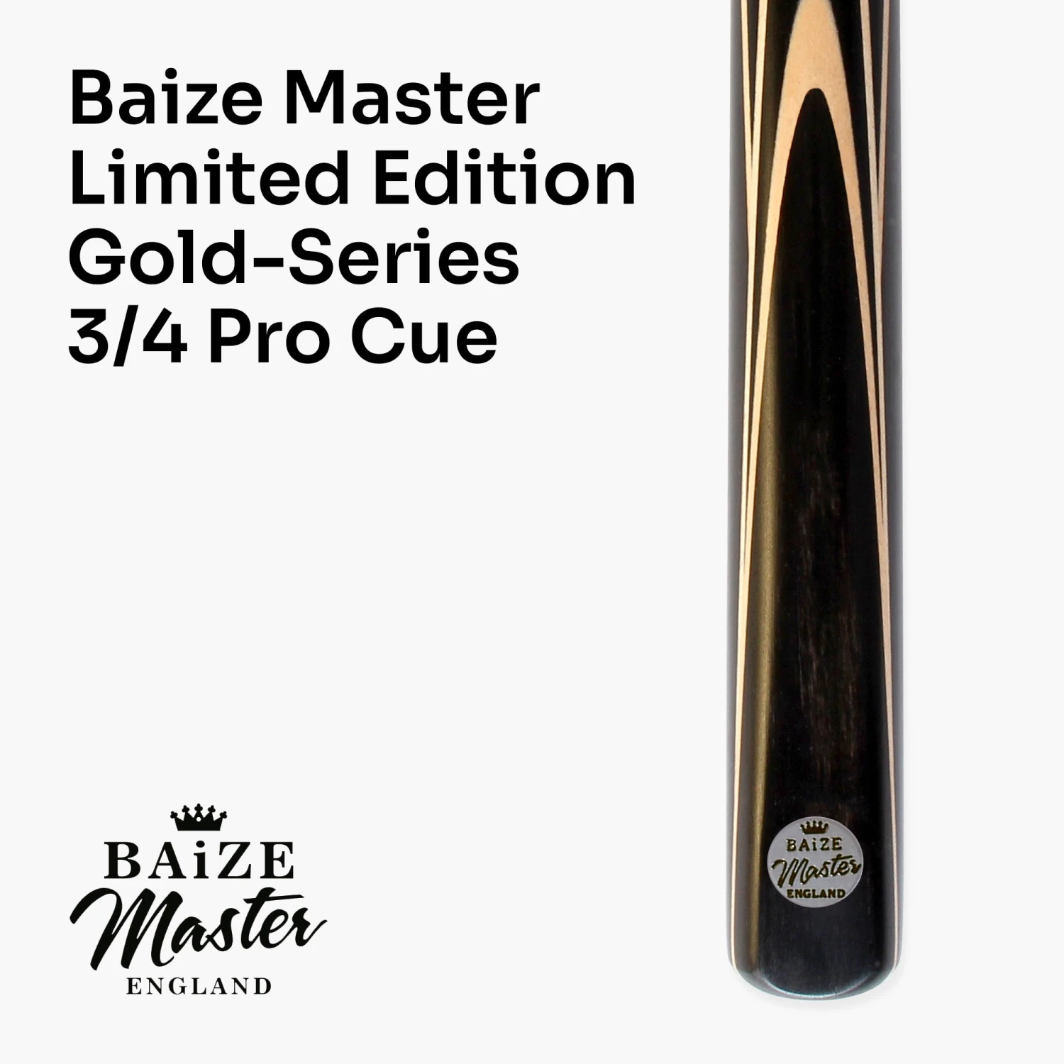 Baize Master Gold Series professional snooker pool cues are synonymous with quality, designed for the more serious player that wants to take their game to the next level. These limited-edition cues are hand-fitted with a Baize Master professional medium 8.5mm tip, ideal for precision play in English pool. They are professionally hand polished and finished in the UK to a high standard, making them smooth and ready for play. Coupled with a stiff low deflection North American ash shaft with symmetrical chevrons, these cues make it easier to pot balls with side spin and control the cue ball. We’ve gone above and beyond to give this cue its deserved professional touches, and it plays as great as it looks.