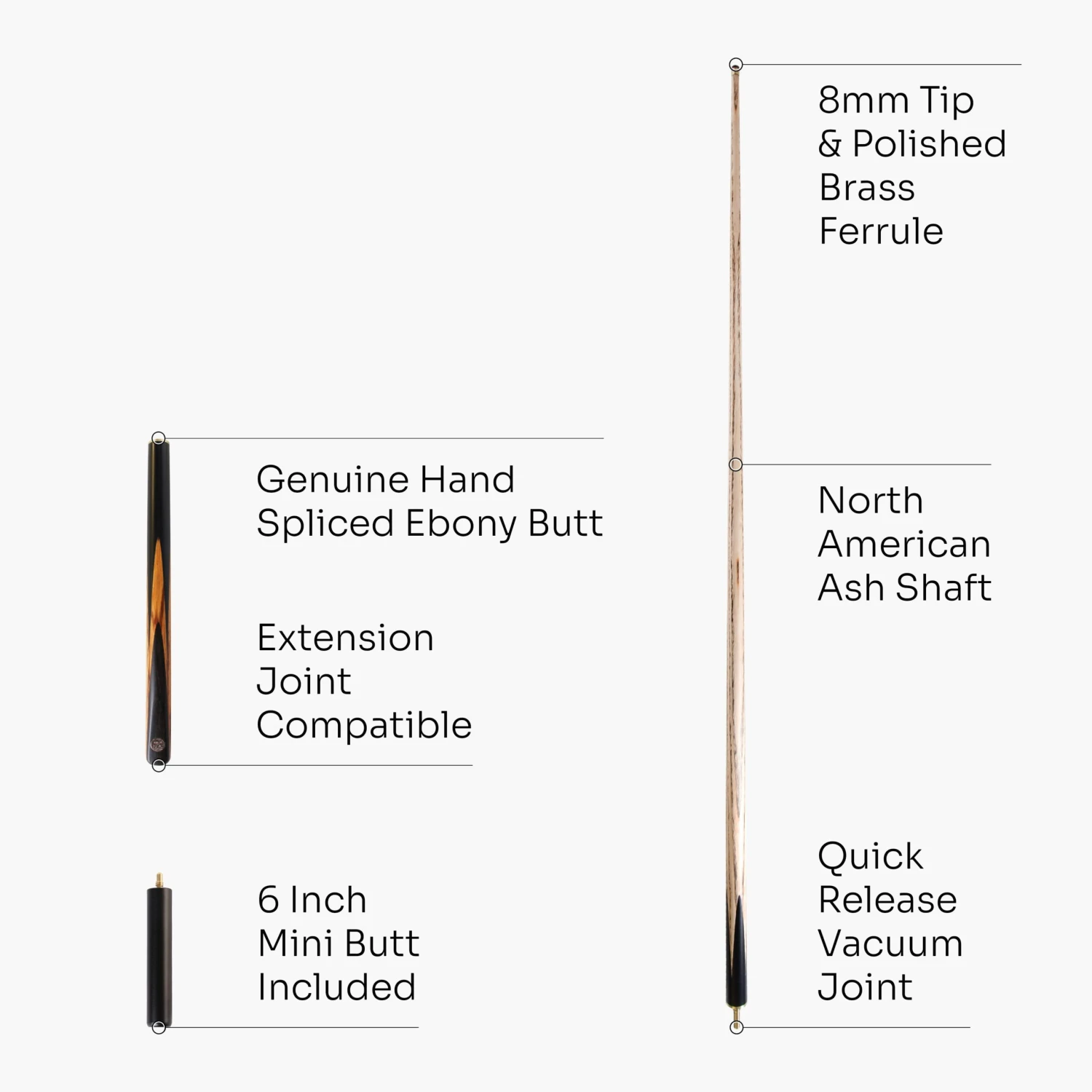 - Quality quick-release brass vacuum joint that pops when you break the cue apart – quick assembly and dismantling