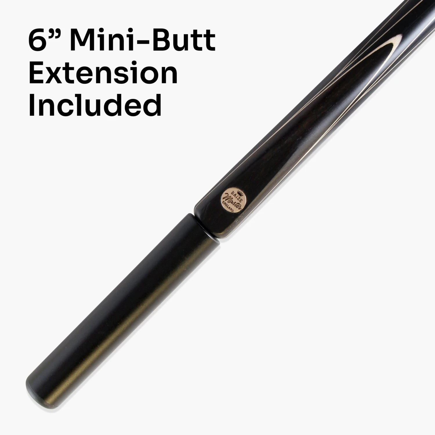 - Polished Baize Master brass badge on butt end with brass extension joint (mini butt included)