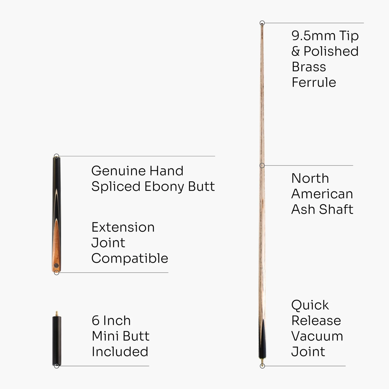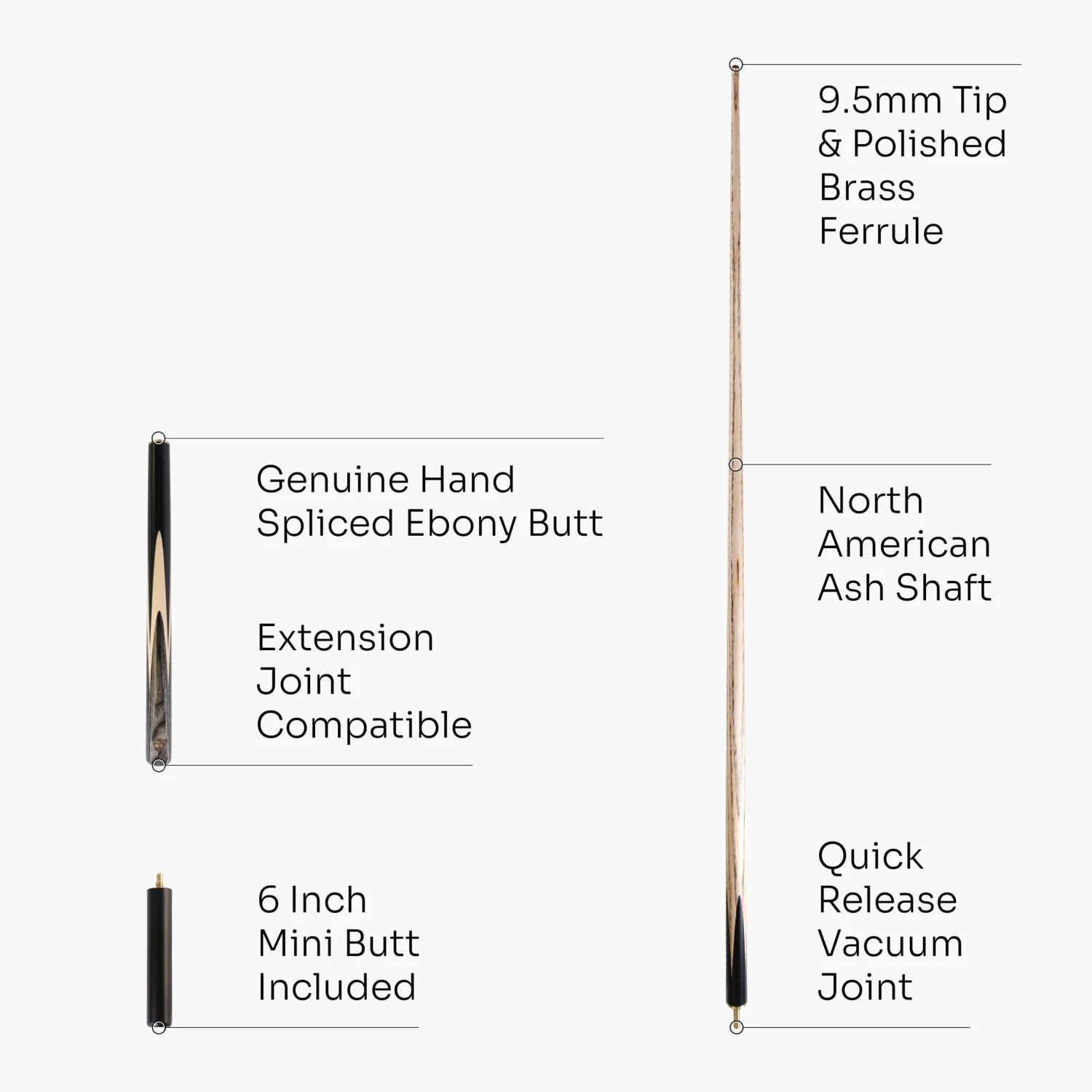 - 58 inch cue with a ¾ joint – great feel for the shot and convenience in transport