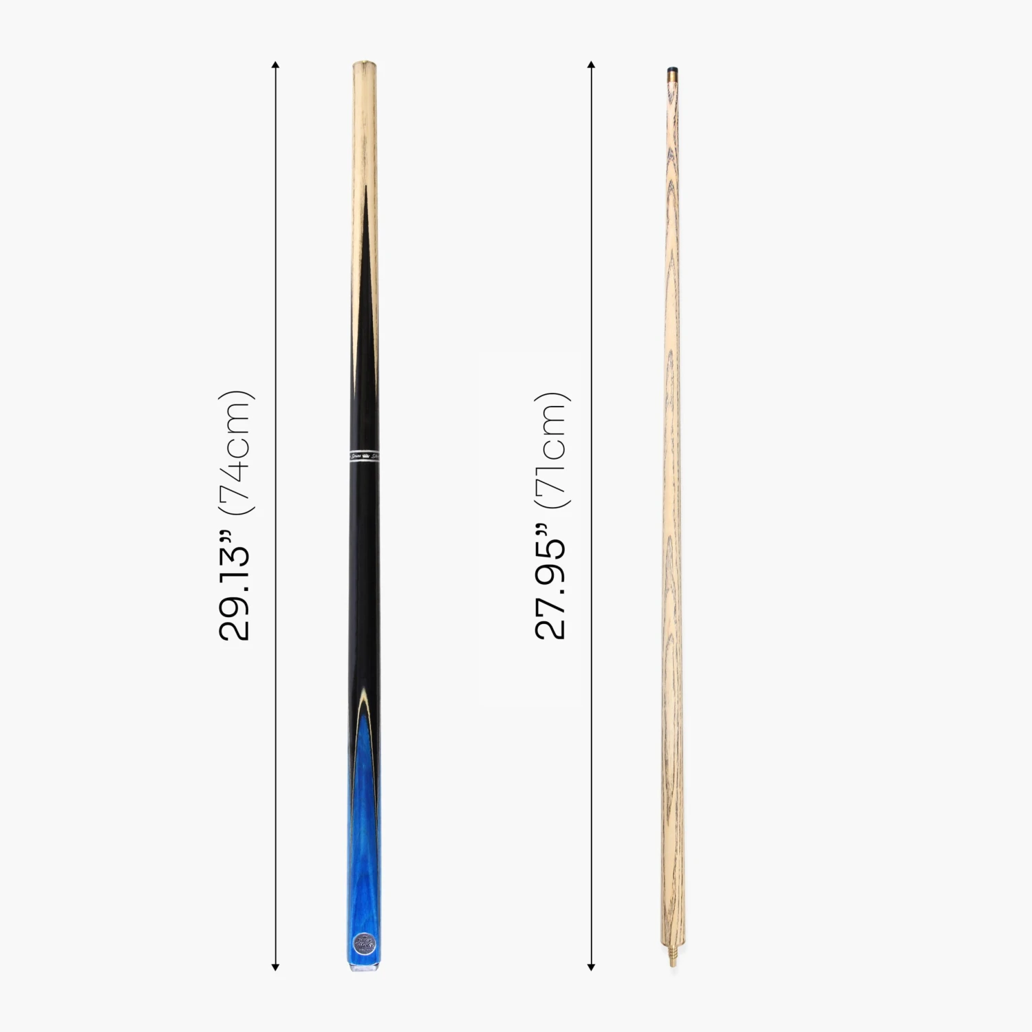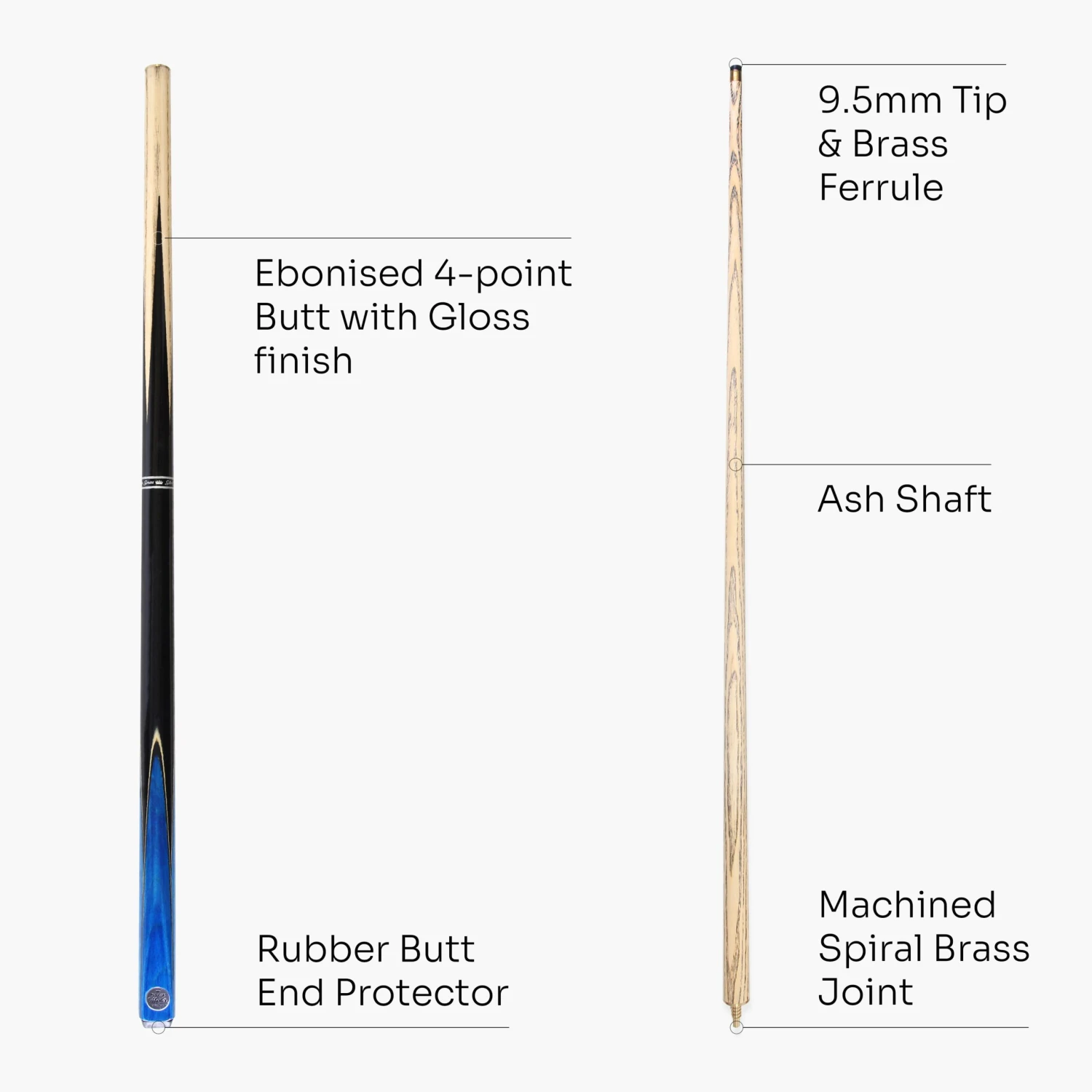 These quality ‘Silver Series’ cues by Baize Master have a stunning four faced spliced butt design featuring grey stained Maple splices, topped with complimenting white veneers. The black 4 point ebonised butt with a high gloss finish gives this cue a real luxury feel whilst the sanded ash shaft provides a super smooth cueing action. The cue features a good quality, layered leather tip, for better cue ball control.