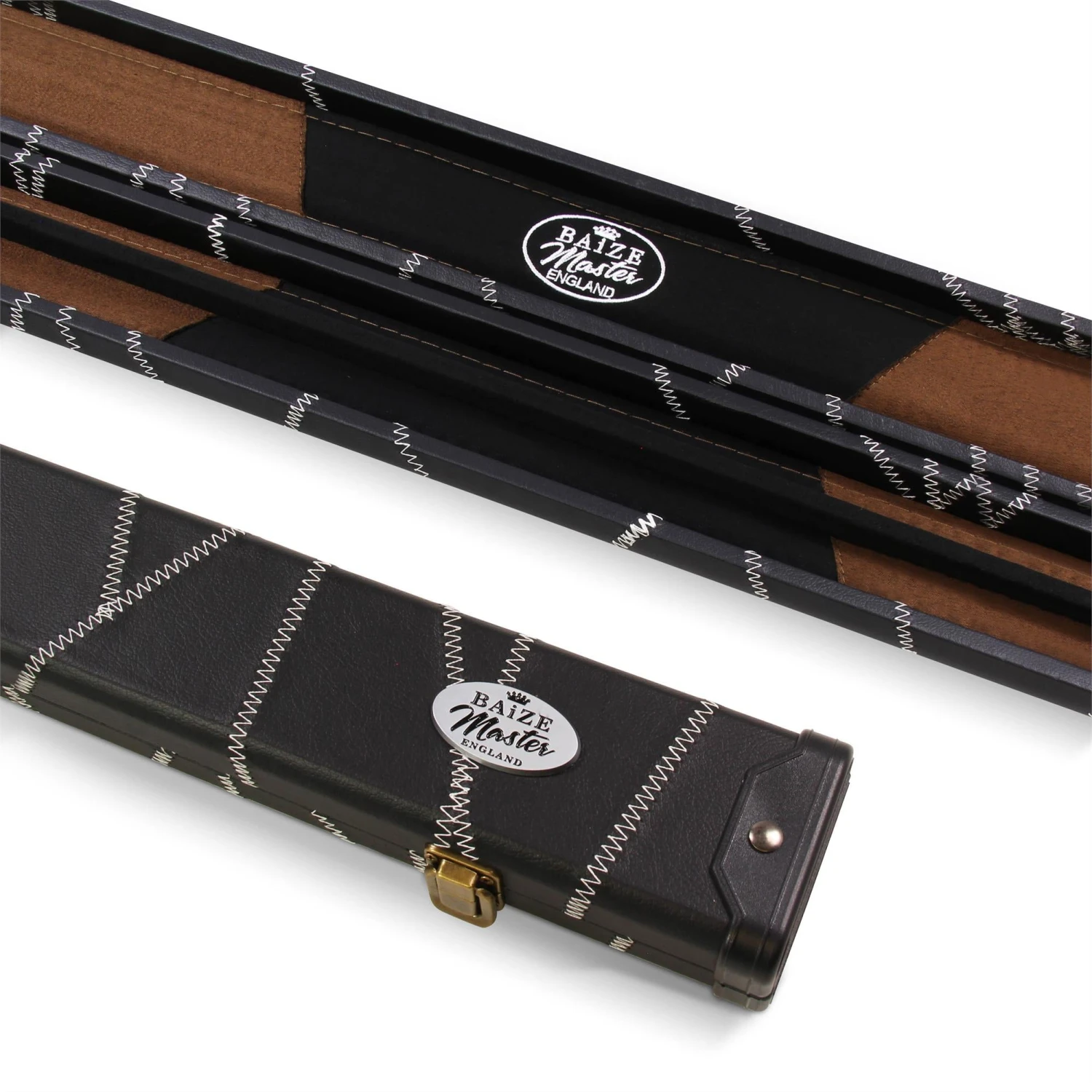 Our deluxe Baize Master cue cases feature chunky plastic ends for improved protection mixed with a white stitched external design. Combined with an internal chalk compartment and black and brown suede style padded interior – this case offers the perfect blend of stylish looks and practical function. Finished with a quality exterior Baize Master metal badge and debossed logo in the handle.