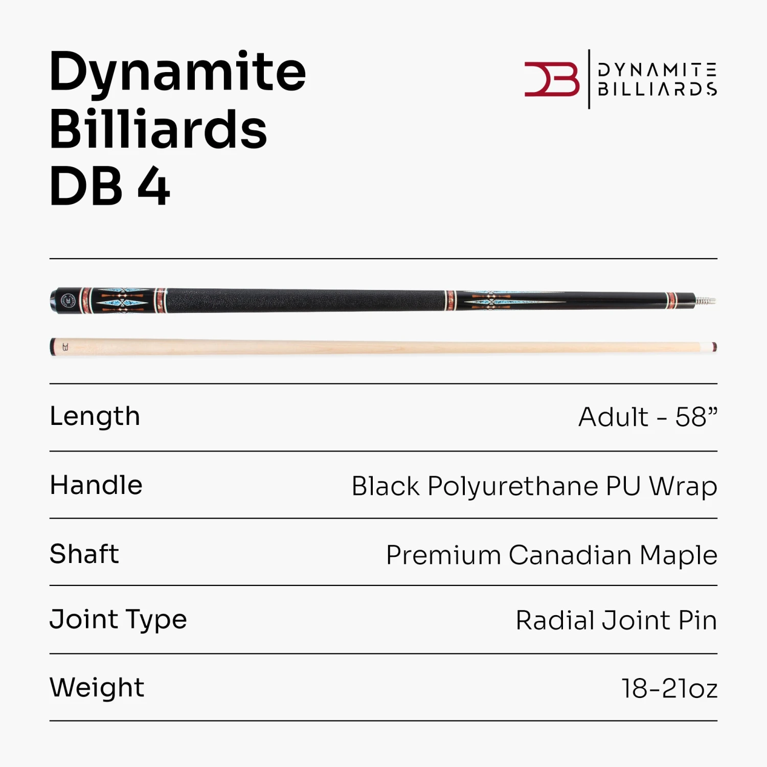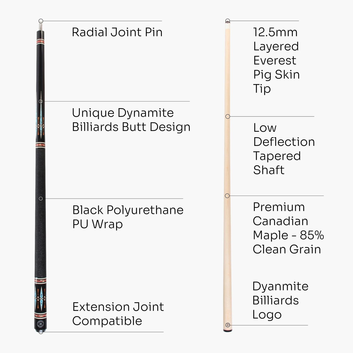 - Black UV coated butt with unique Dynamite Billiards decal design