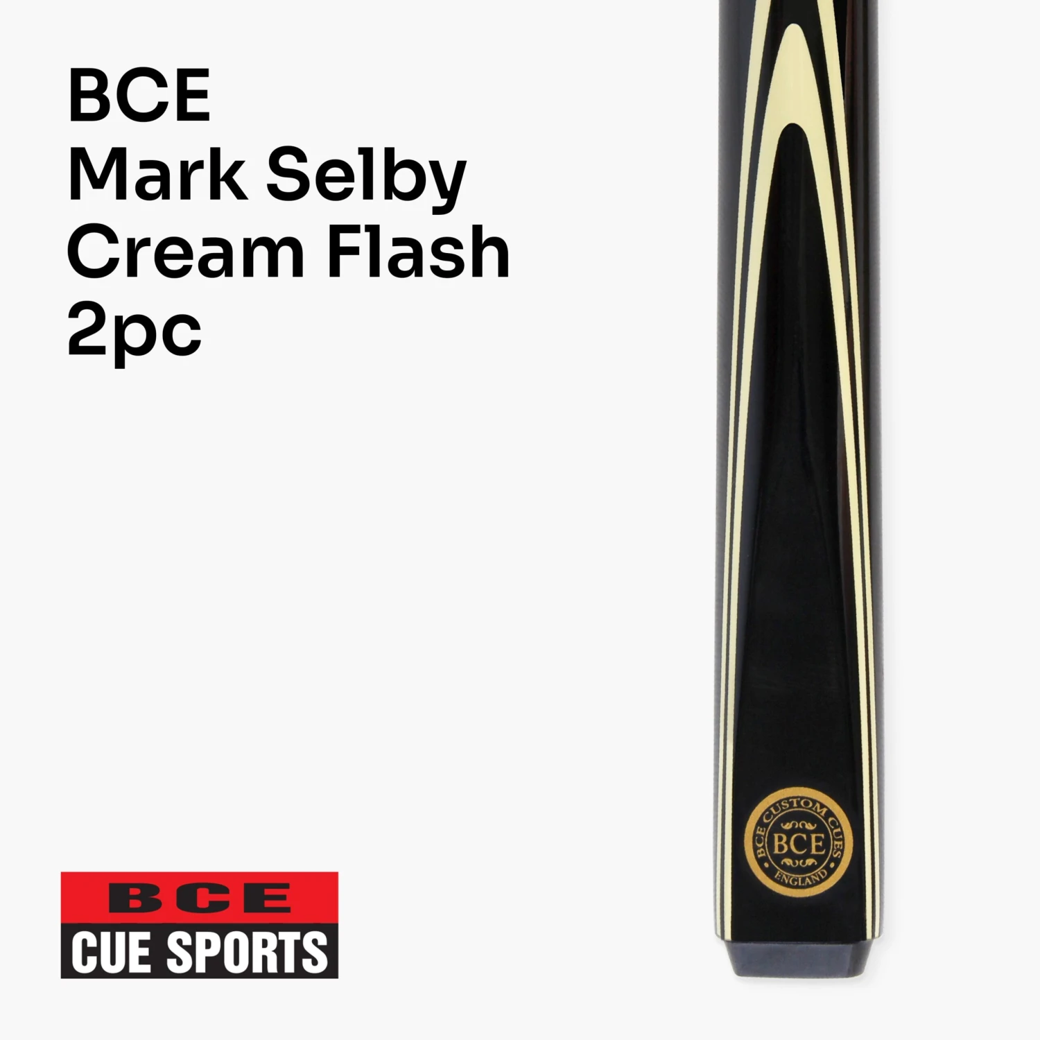 From the BCE collection comes this smart-looking cue endorsed by multiple world champion Mark Selby. It has a Mark Selby signature graphic on a black base coloured cue butt with cream veneer design decals. With a 9.5mm leather tip, this cue can be used for both snooker and English pool. This cue and case set comprises the BCE Mark Selby Cream Flash 2 piece cue and black hard attache case for convenience in transport and storage.