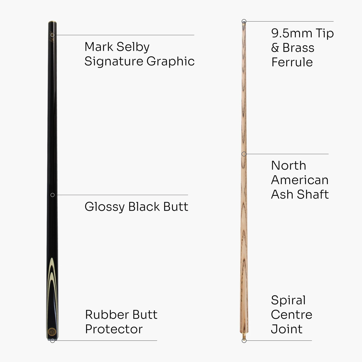 - Grade A North American matching ash shaft, sanded for a smoother cue action