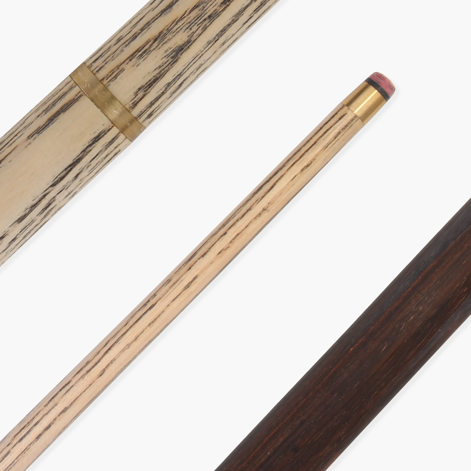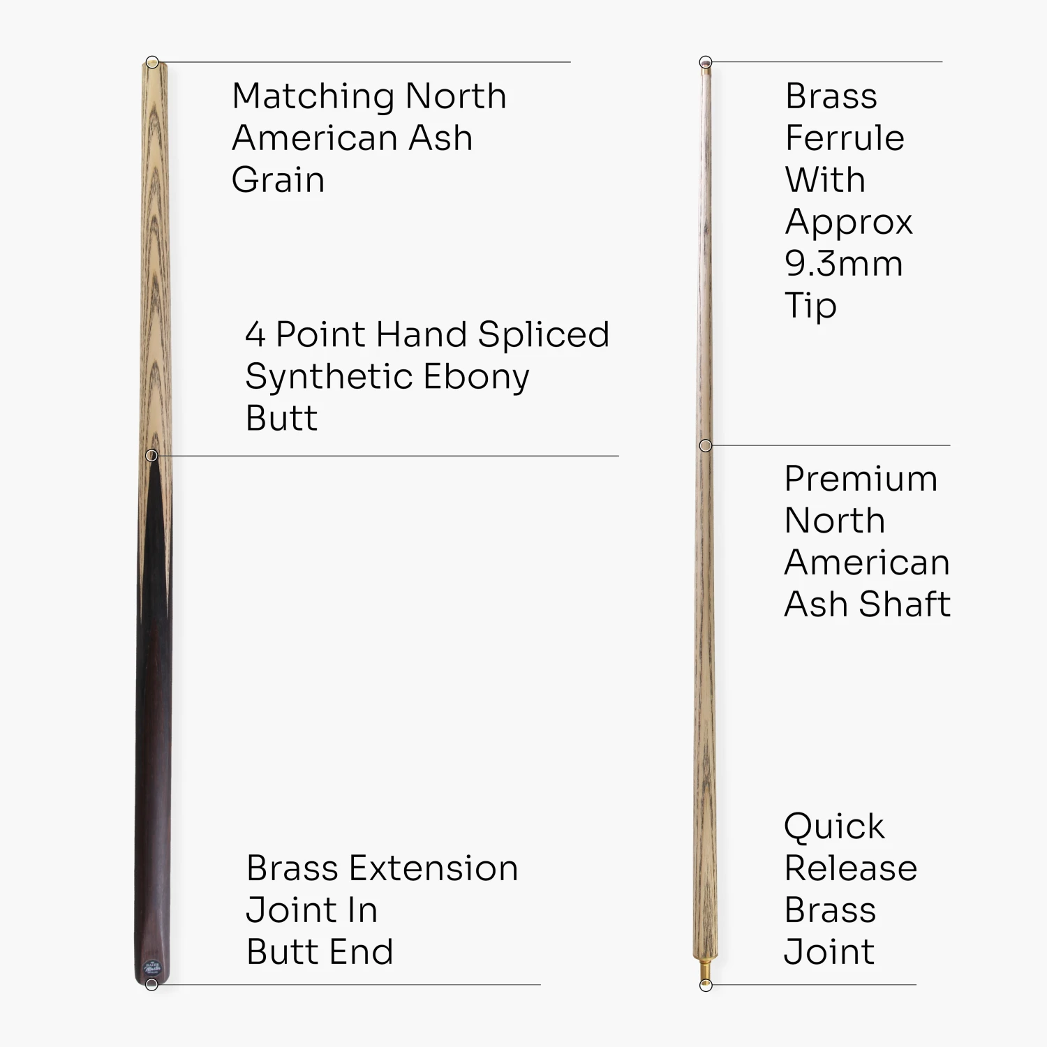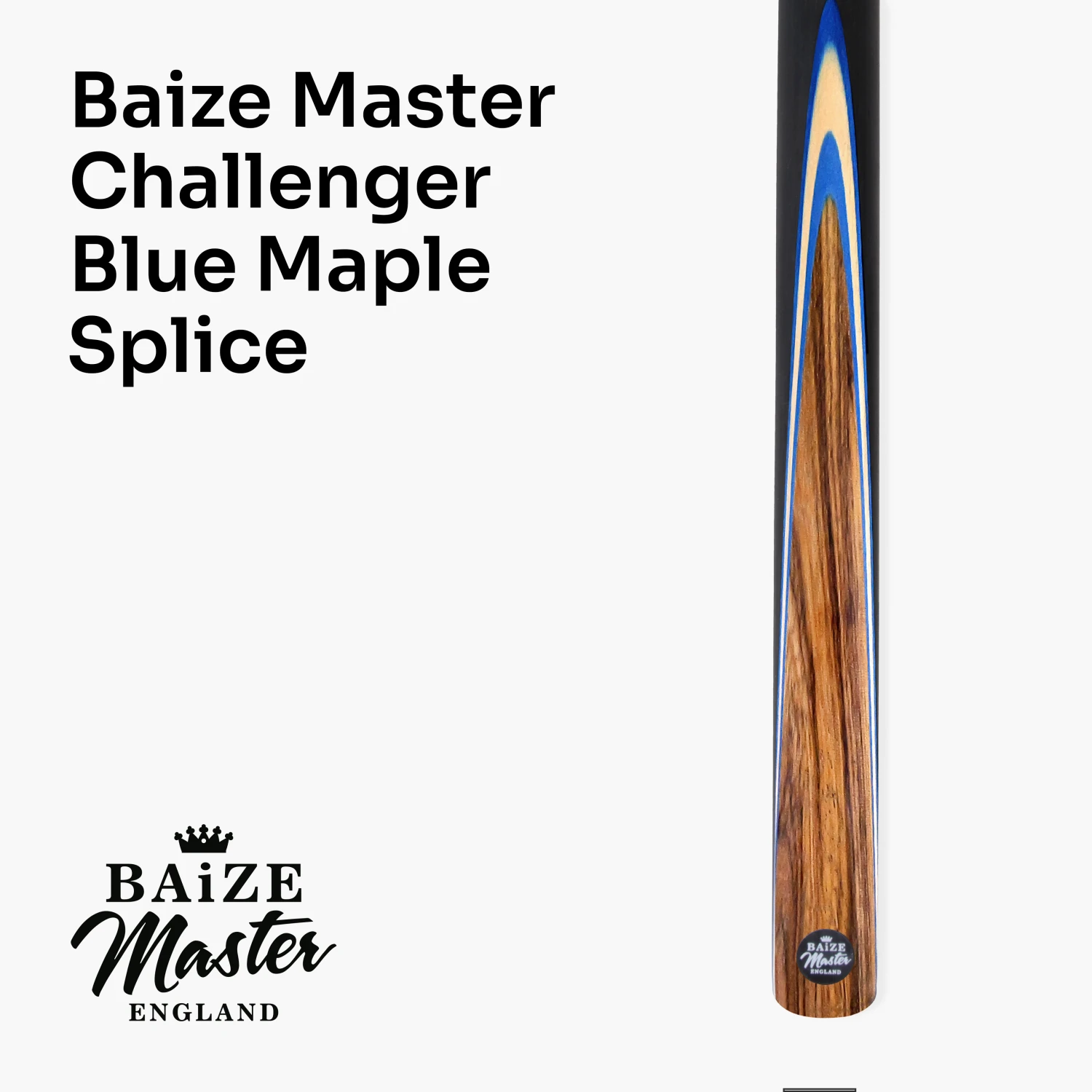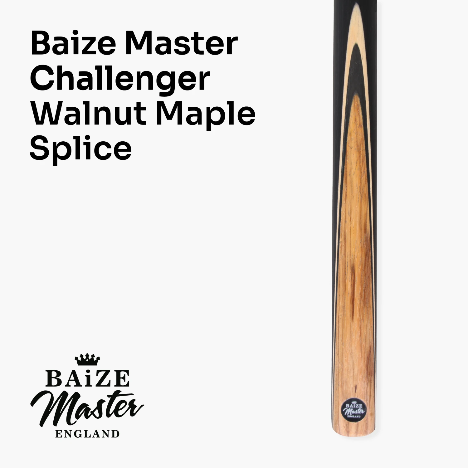 The Baize Master Challenger range of cues are manufactured to high standards using modern innovative methods. The butt is hand spliced from a combination of genuine and synthetic woods, giving a quality feel with a superb look. Fitted with a 9.3mm red leather pro tip, this cue is ideal for precision cue ball control in snooker but can also be used for English pool. This cue and case set comprises the Baize Master Challenger cue, a Baize Master 3 slot black hard case, a long telescopic extension and a 6 inch mini butt.