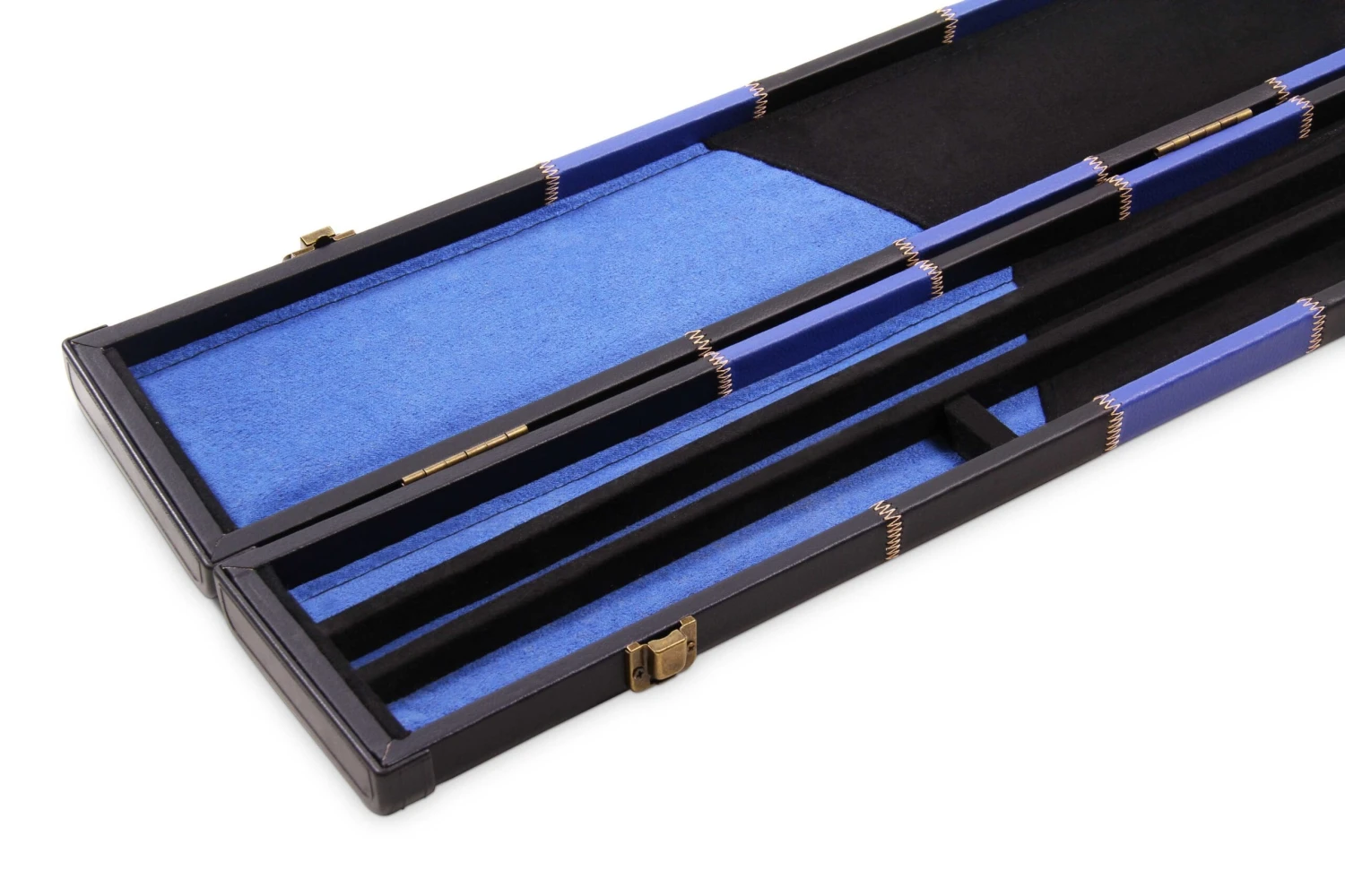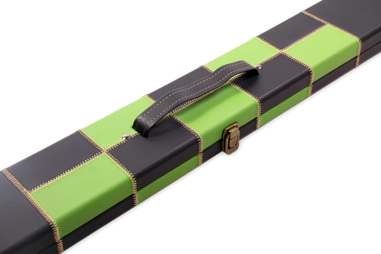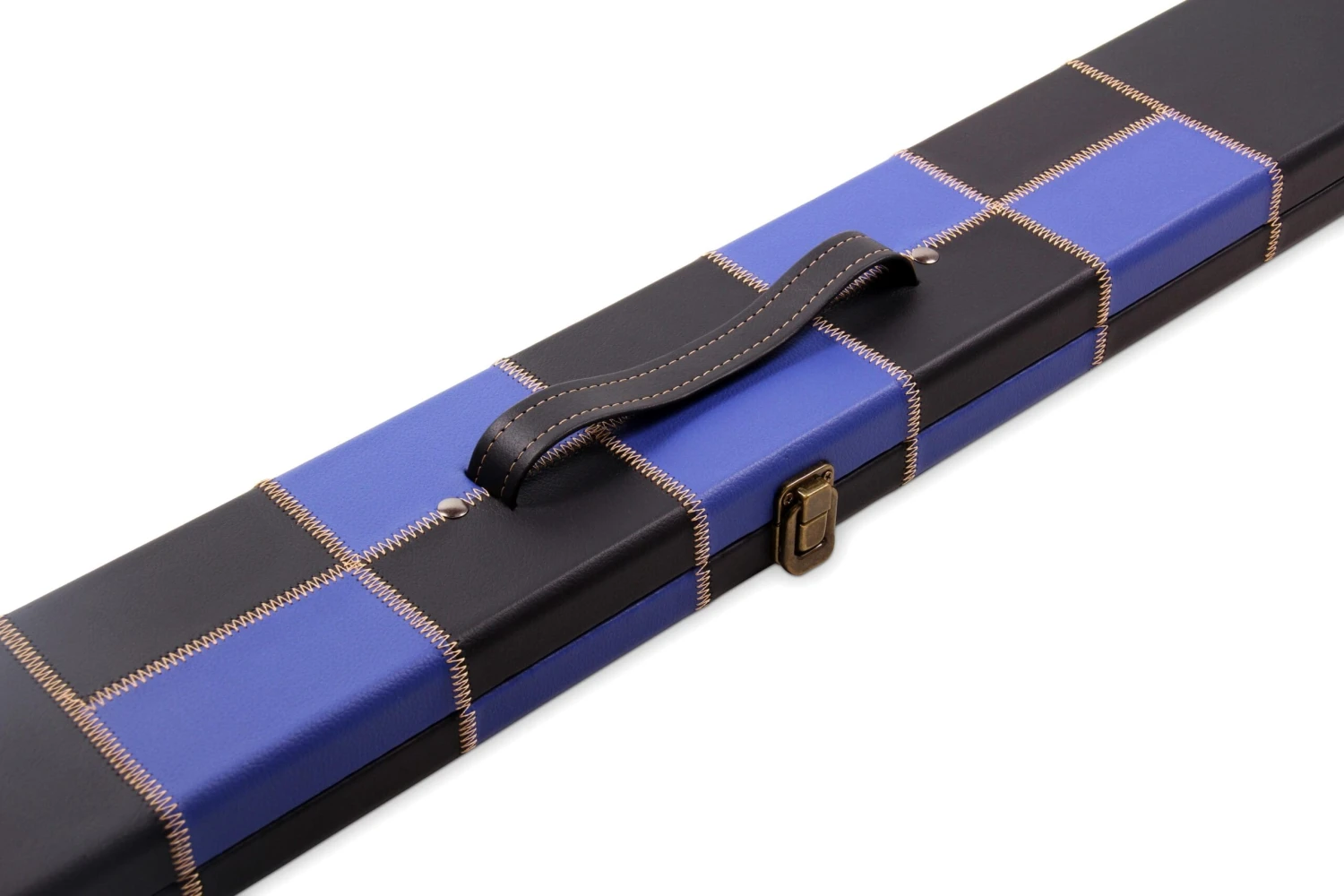 These 3 Slot deluxe cue cases are designed to hold a centre joint cue, telescopic extension, mini butt and chalks. They feature chunky plastic ends for improved protection mixed with an eye-catching chequered patch design for an overall, highly desirable cue case. Combined with an internal chalk compartment and matching colours suede style padded interior – this case offers the perfect blend of stylish looks and practical function.