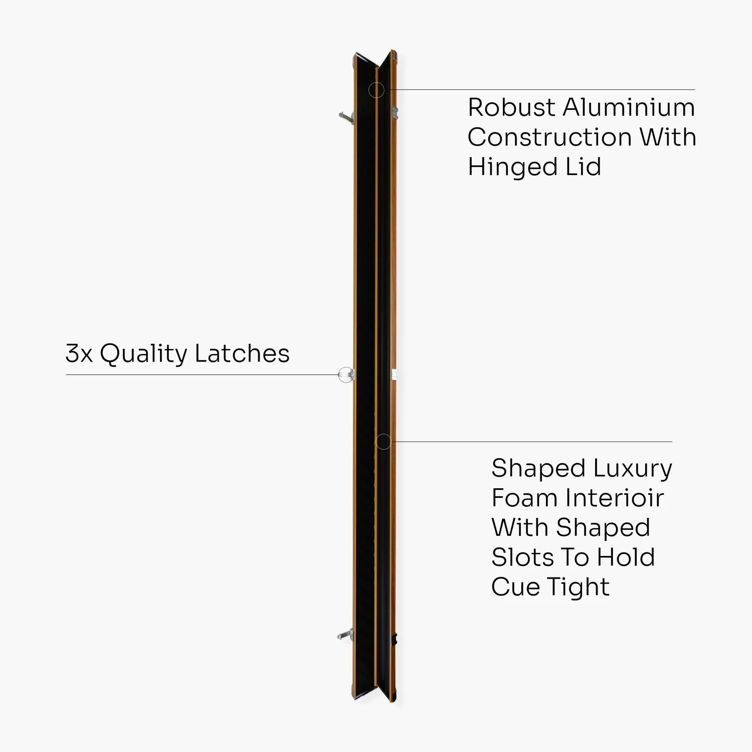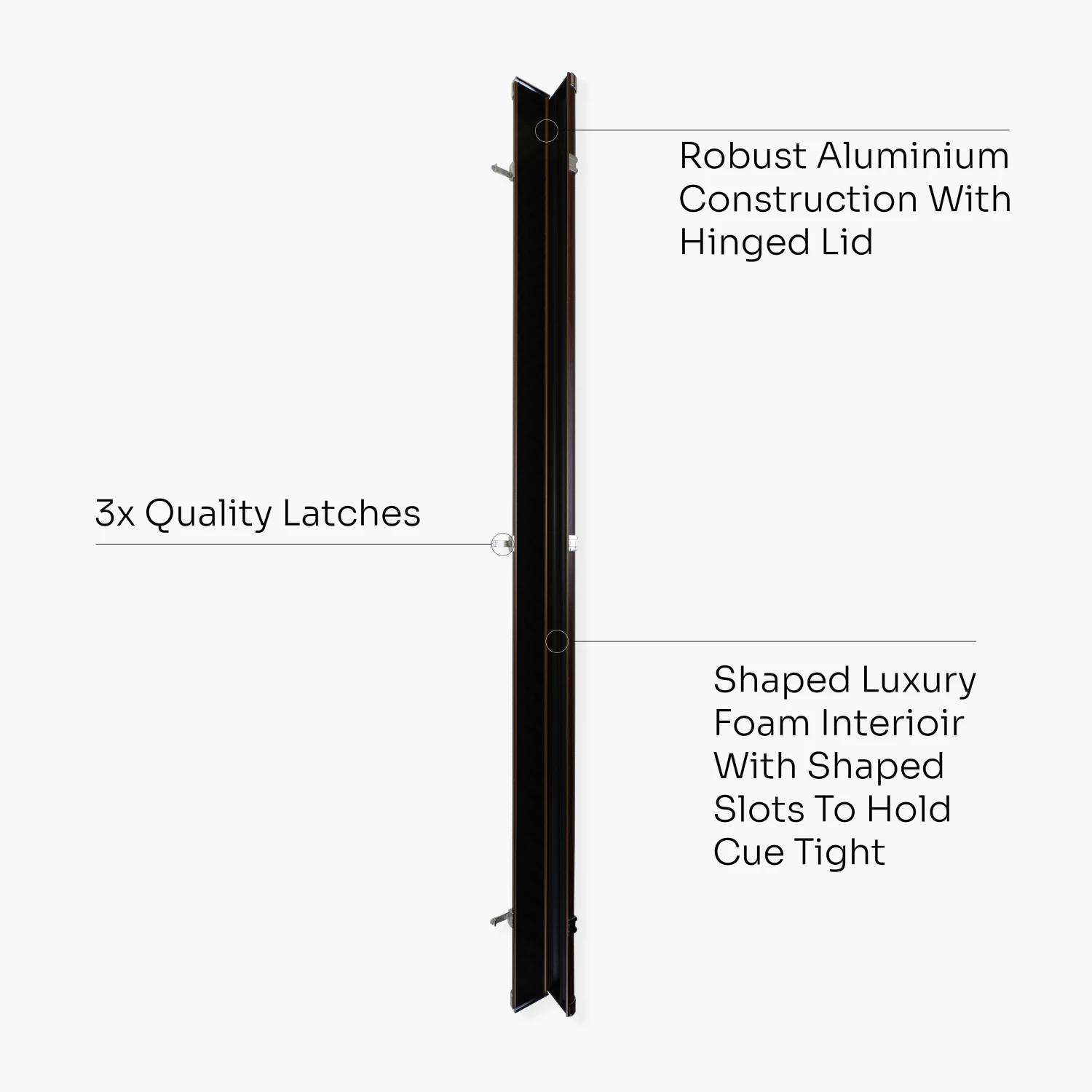 - 3 high quality chrome latches to ensure cues are secured (not lockable)