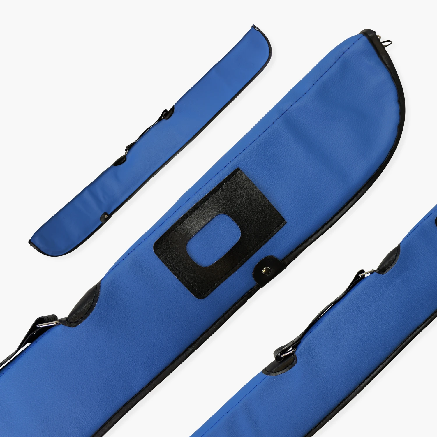 A blue vinyl soft cue case with padding designed to protect the cue and provide a suitable carrying solution