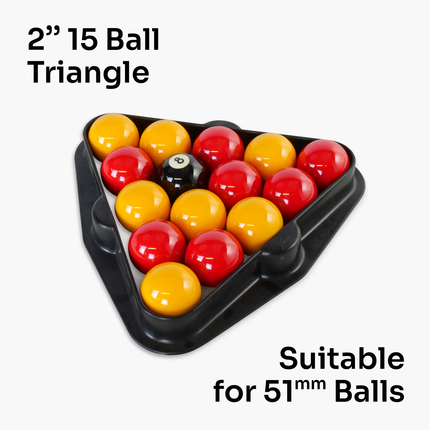 - Holds 15 balls – standard triangle for 6ft, 7ft and 8ft pub pool tables