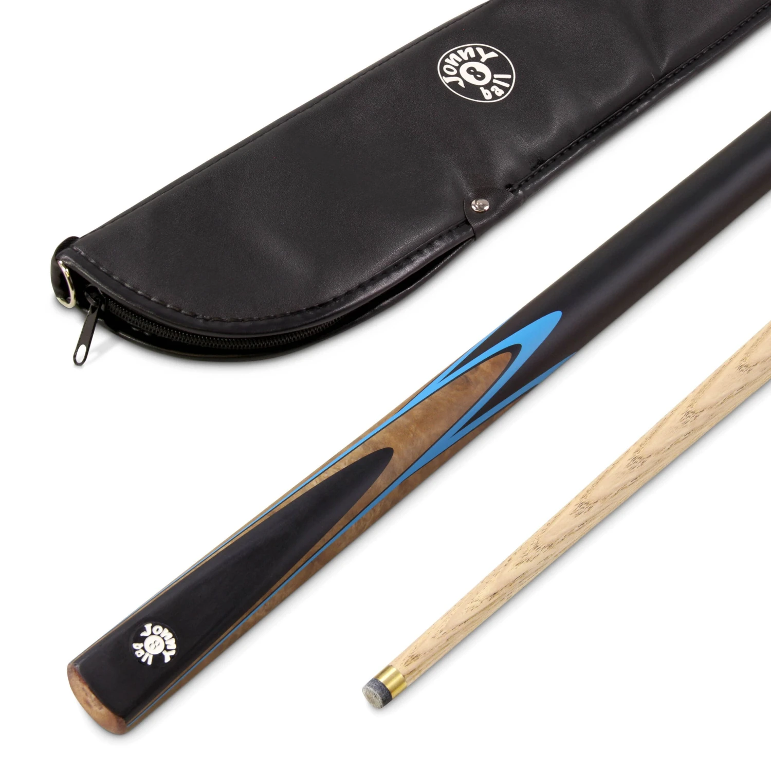 - A two-piece cue with a brass joint, suitable for both snooker and pool