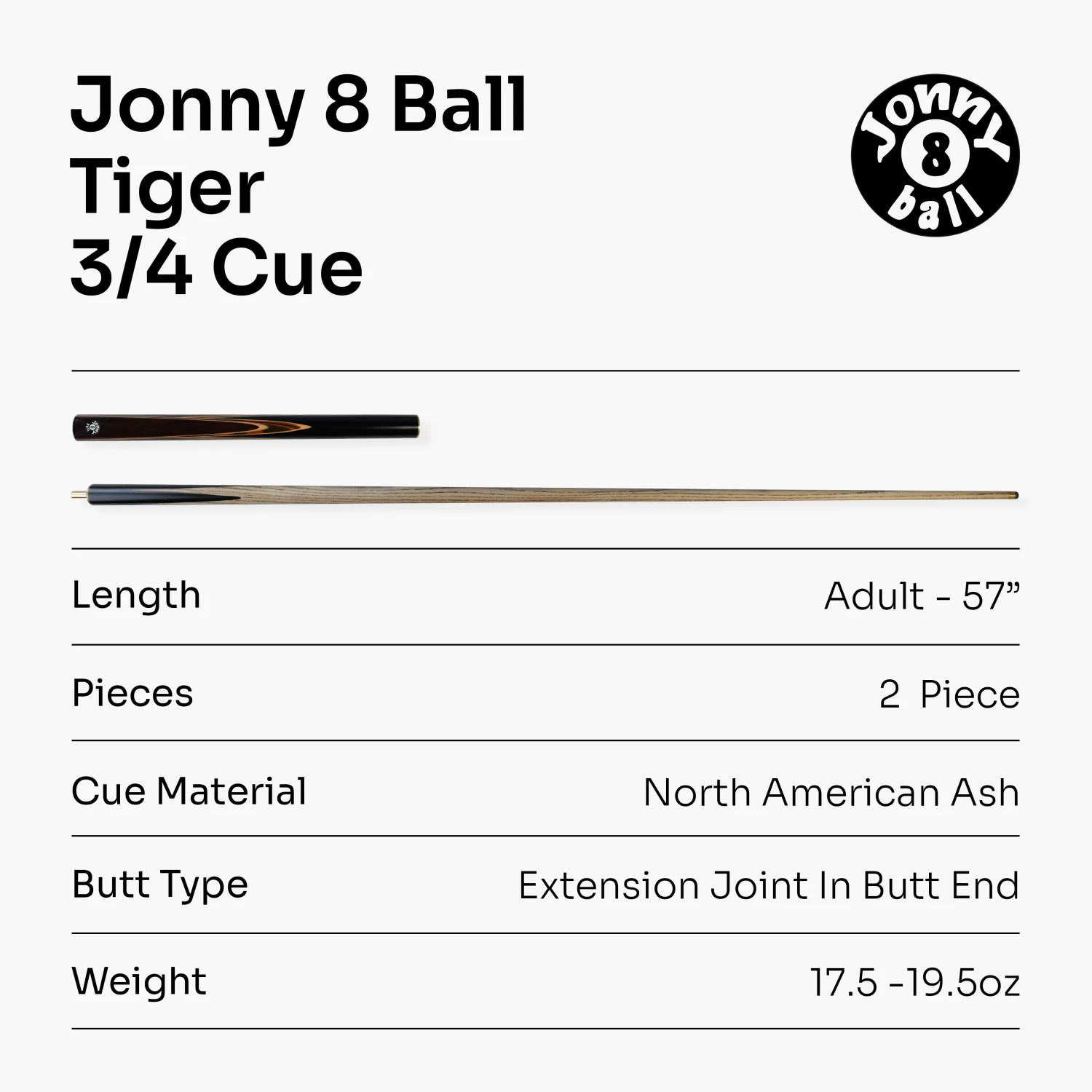 This Classic Jonny 8 Ball cue really emphasises the elegance and style of the traditional game. It has a smooth ash grain shaft with a brass vacuum joint and quick release mini butt extension. With a smaller 8.5mm tip, it has been designed with pool players in mind, but can also be used for snooker, for those that prefer smaller tips. Weighing up to 21oz, this heavyweight cue packs a punch for powerful break shots.