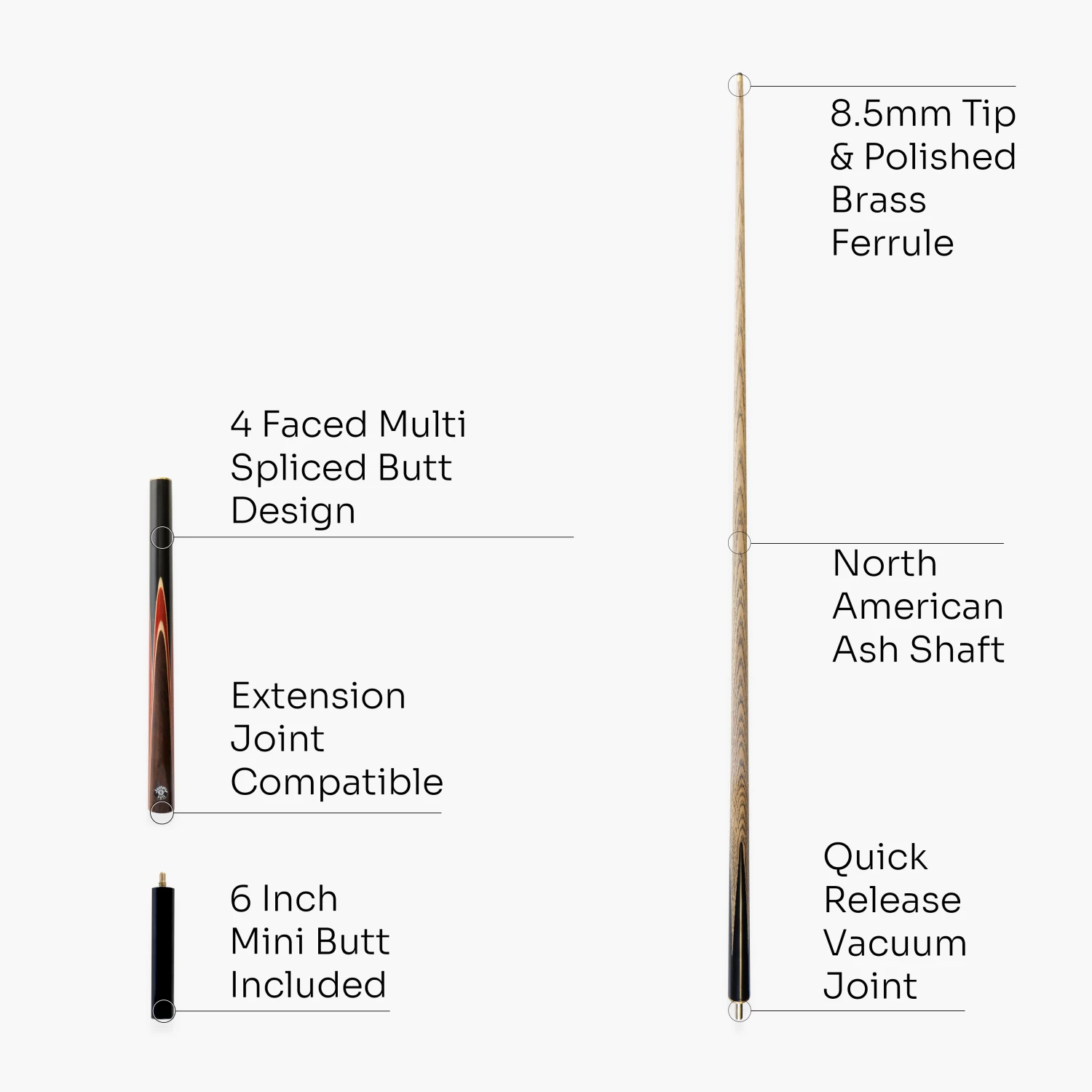 - 57” 3/4 joint cue with centre joint and mini butt extension