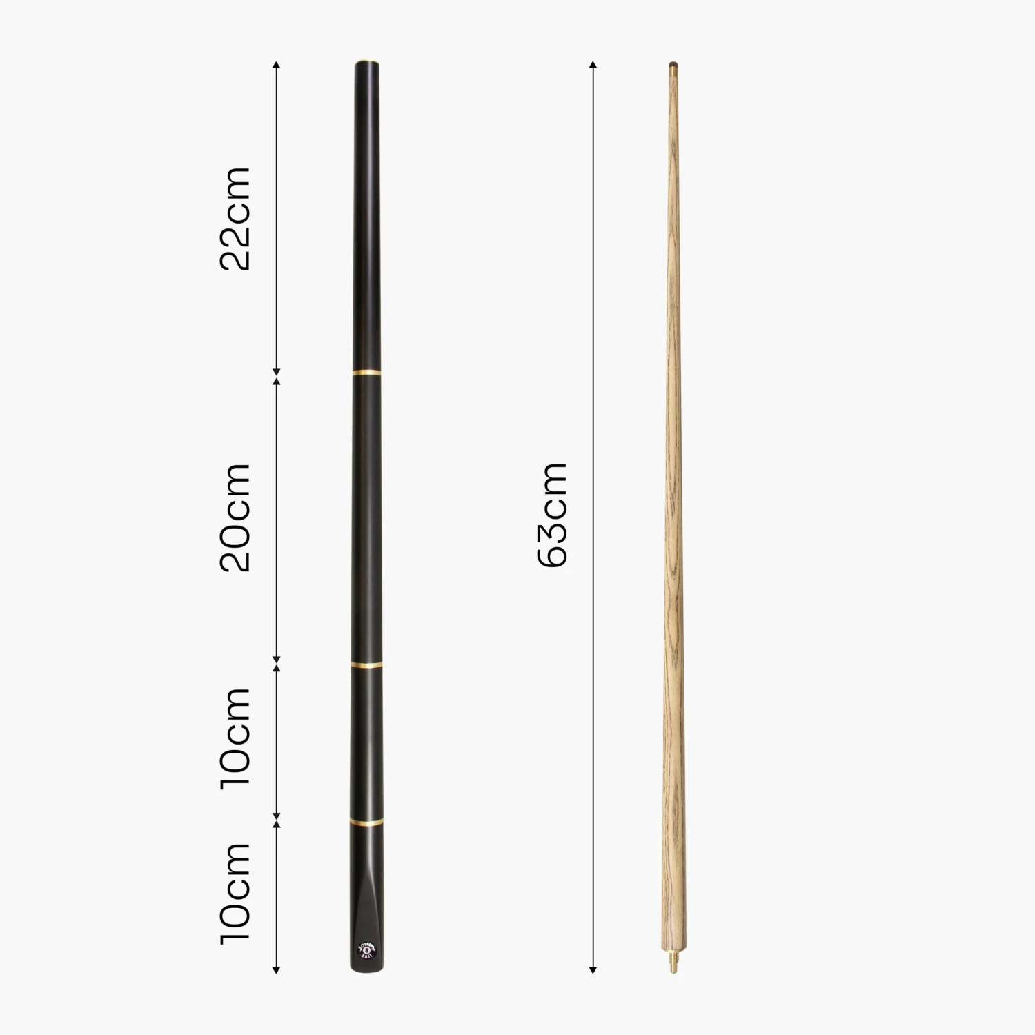- 48” cue with centre joint – butt and shaft each measure approx. 63cm