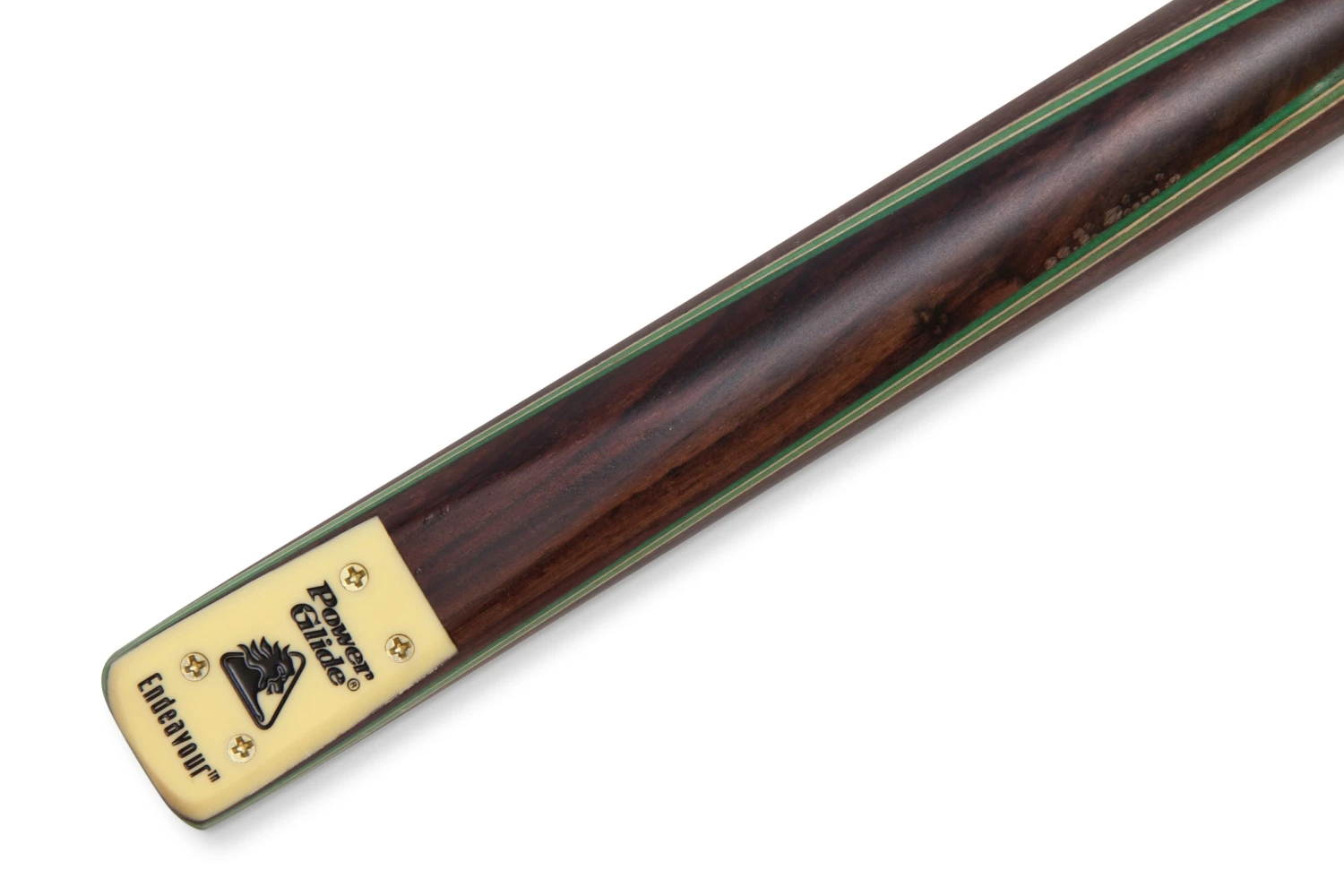 - PowerGlide logo and cue name on screw plate