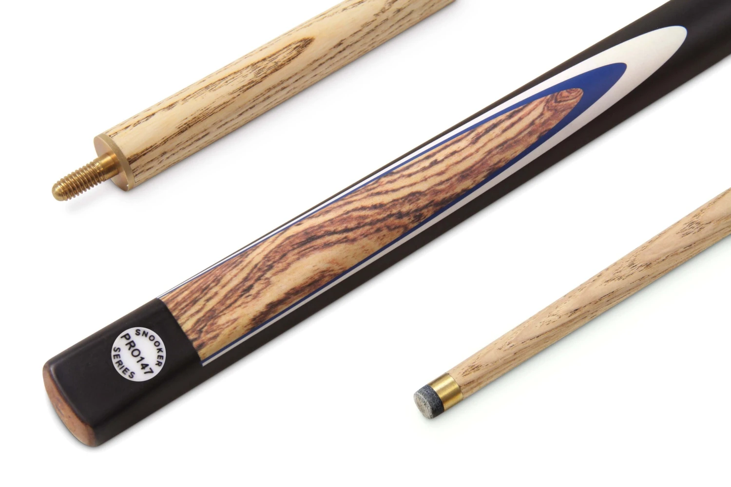 - A three-piece cue with a brass joints, suitable for both snooker and pool