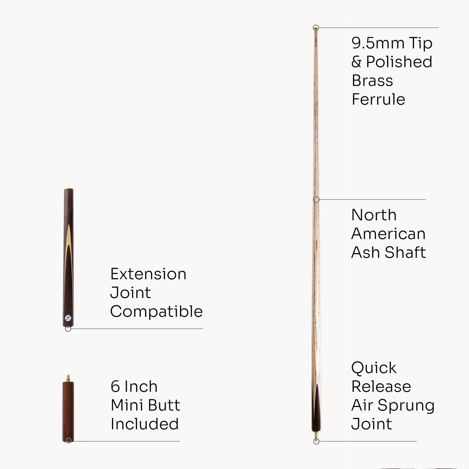 PRO147® is our British mid-range cue brand, aimed at players that want better quality without breaking the bank. This is our great value, traditional style hand spliced sandalwood cue. It has a stiff, smooth ash shaft which helps create less deflection in your shots. This cue and case set comprises the PRO147 Classic Sandalwood ¾ cue, a Long Telescopic Extension, a mini butt and a ¾ Black Hard case for convenience in transport and storage.