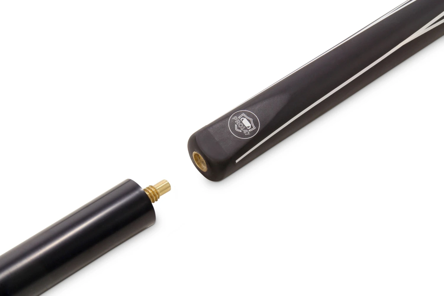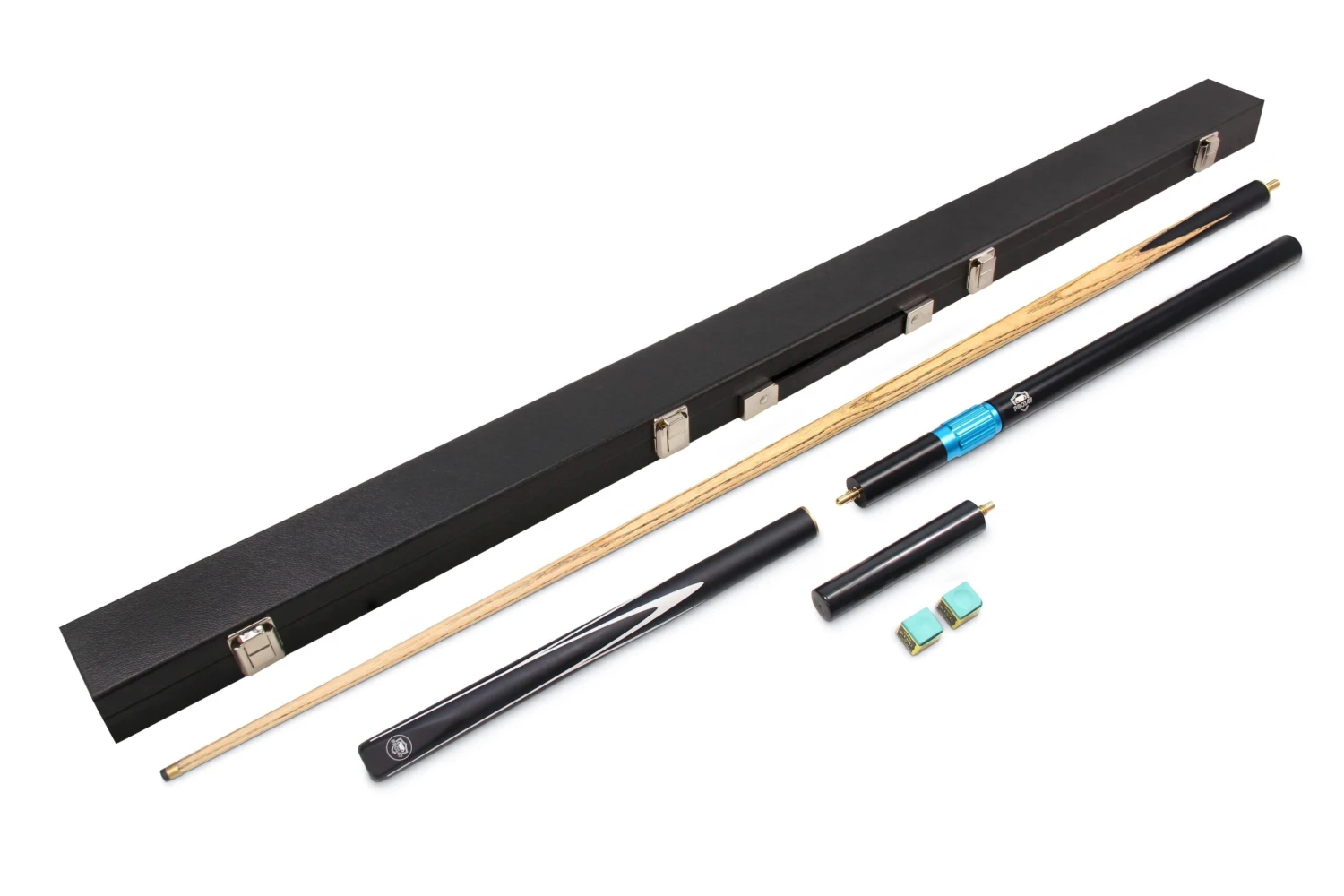 The PRO147 Striker cue is a traditional style 3/4 cue with an eye-catching 4 prong design on a matt black butt. It offers fantastic value for money, providing great balance and ball-striking coupled with modern design and a 9.5mm tip for precision play. The all-in-one cue and case set includes matching long telescopic screw in extension, mini butt, 2 chalks and a 2 slot hard case to neatly house the whole set.