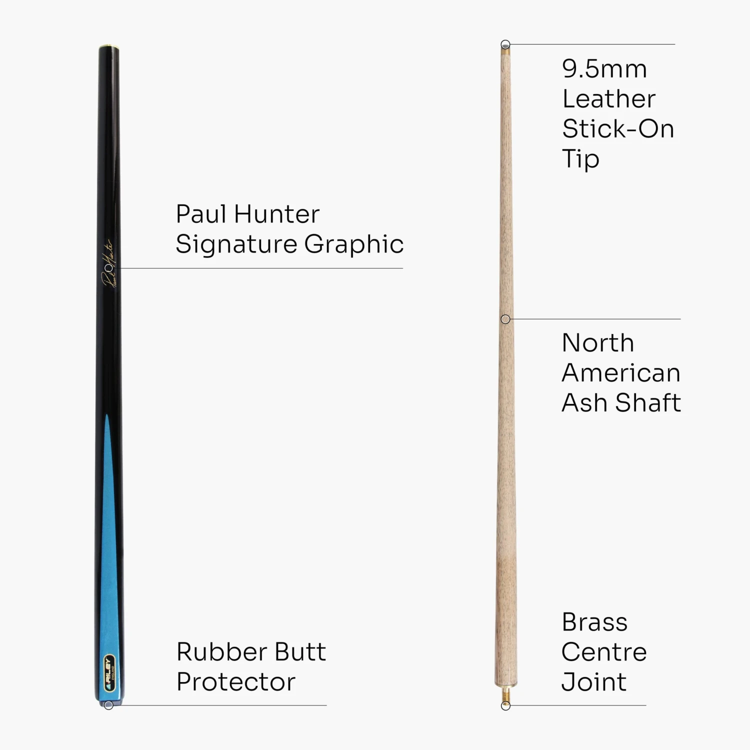 The Riley Paul Hunter Striker 48 inch cue is ideal for home tables, kids or anyone who prefers a shorter cue. It has a Paul Hunter signature graphic on the butt of the cue with an attractive blue stripe design. With a 9.5mm leather tip, this cue is suitable for use in both snooker and English pool. This cue and case set comprises the Riley Paul Hunter Striker cue and a Riley soft sleeve case for convenience in transport and storage.