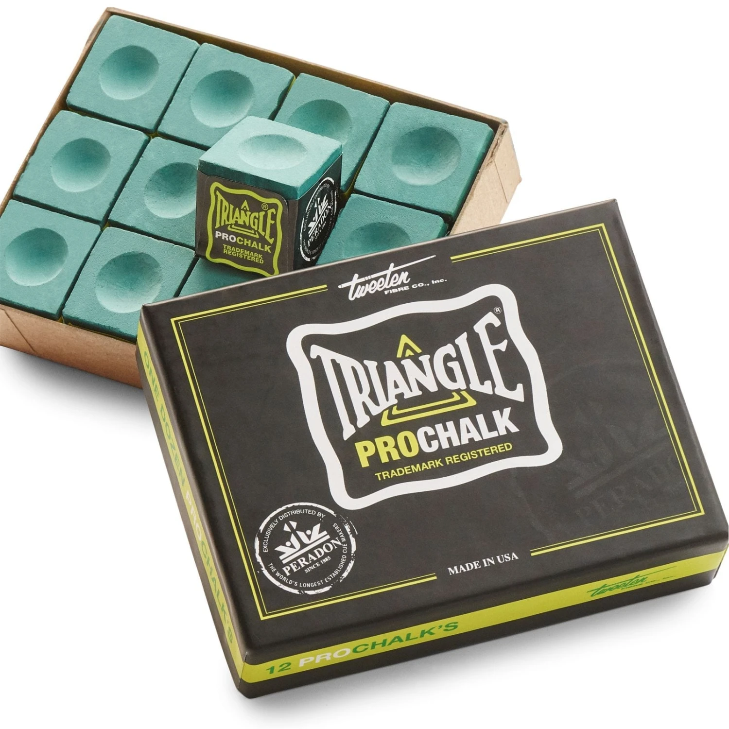 Triangle Pro-Chalk has added ingredients to increase friction and cue ball control even further, creating a smooth feel with incredible grip. Produced by Tweeten Fibre Co. in the USA, the world’s best known and most respected chalk making company